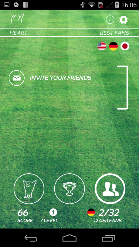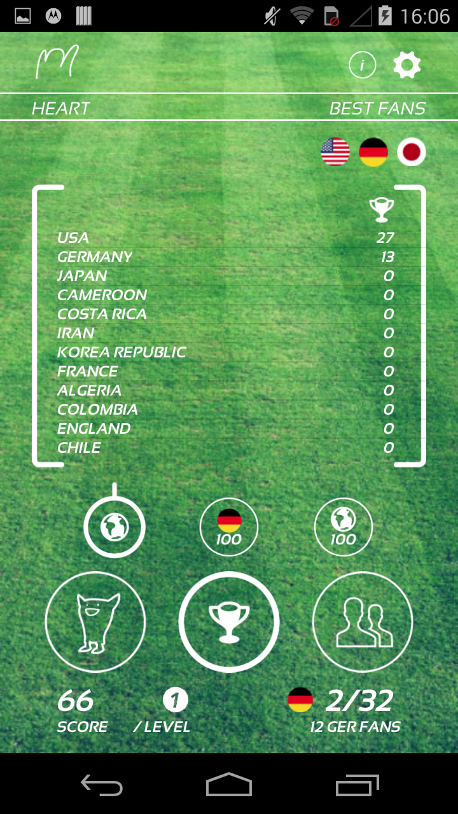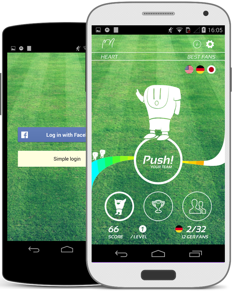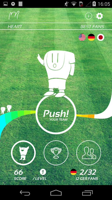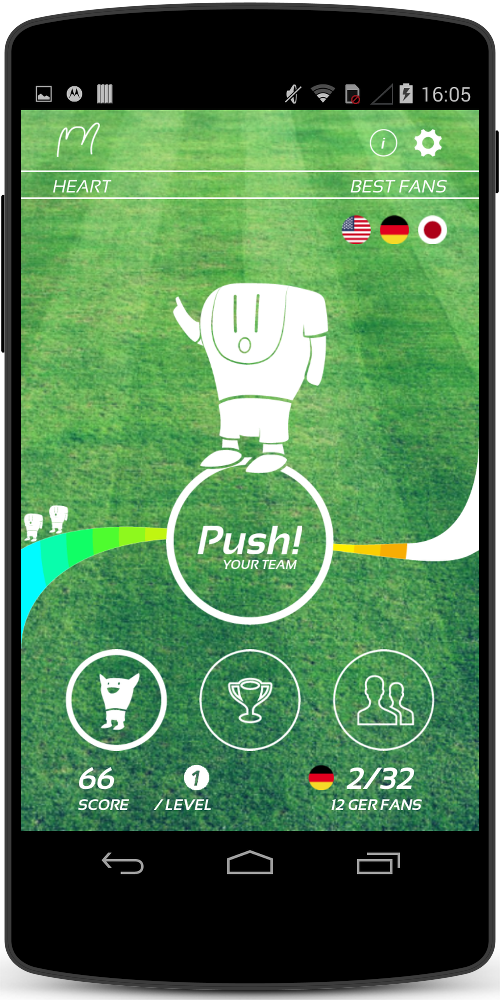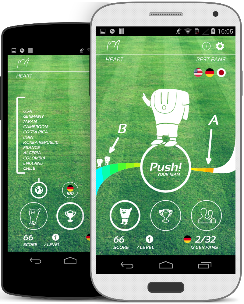 Push! your team and share your passion! Get scores for every click and try to be the best fan of your country or even of the world!